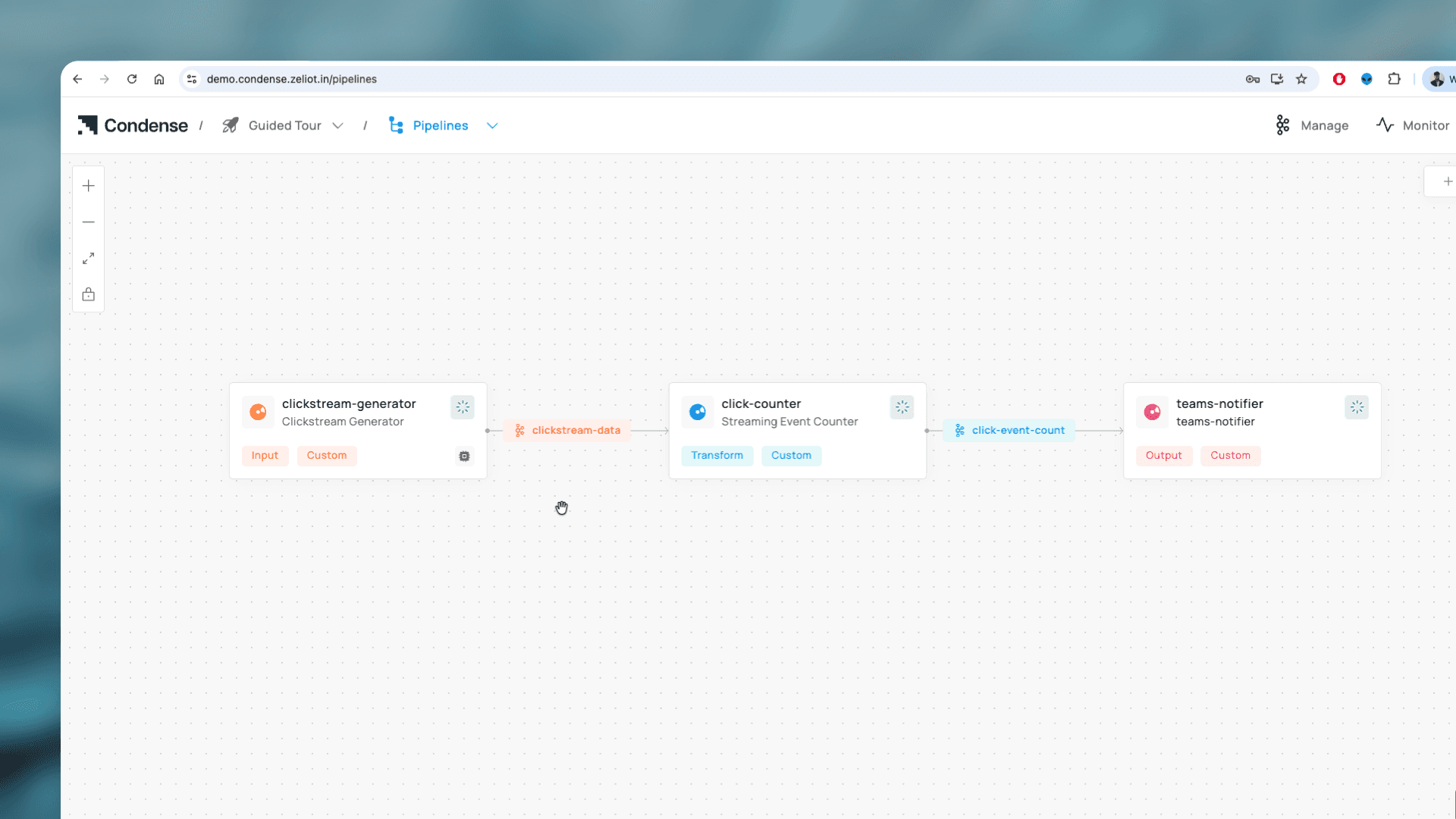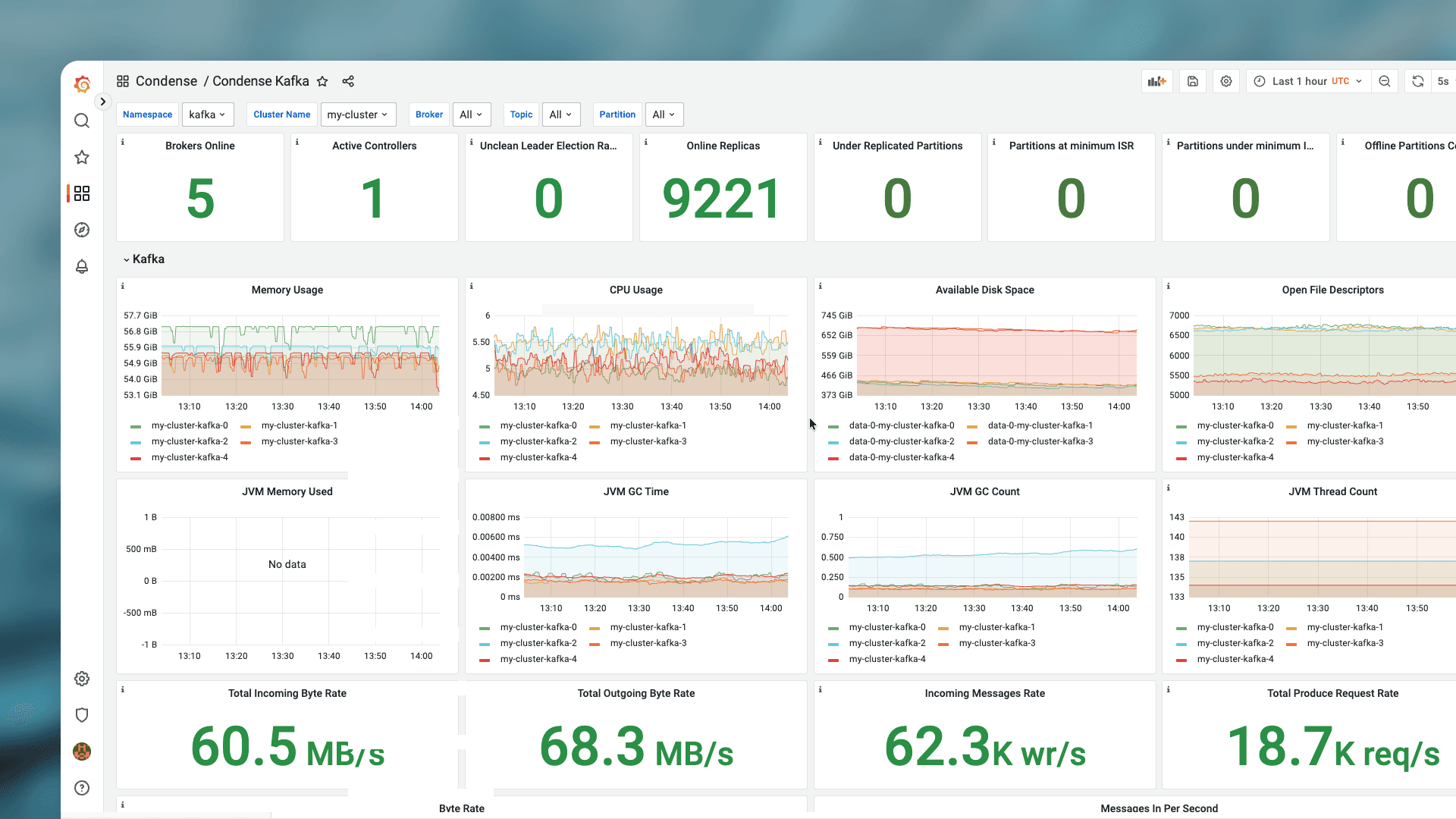 Condense deploys through Cloud Marketplace to your cloud environment. It ships a managed real-time data streaming backed by Kafka. This abstracts away infrastructure and maintenance complexity, including auto-scaling, failovers, and upgrades. You get a seamless and serverless-like backbone within your own cloud without weeks of manual setup